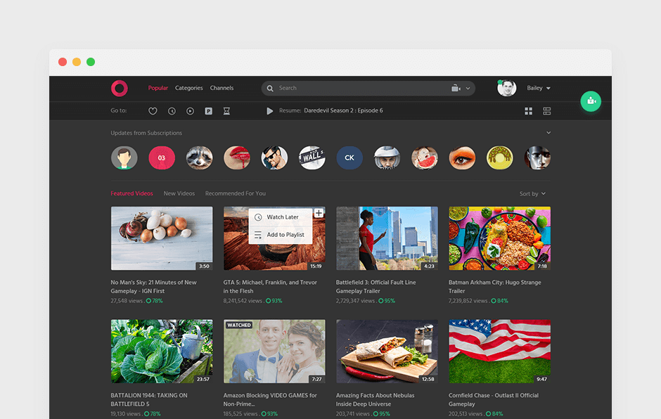 Inspired by Netflix and YouTube, Circcle is a modern, clean, and edgy design that showcases high quality video sharing.